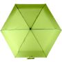Összecsukható, automata esernyő (21 inch), hat panellel és acél vázzal. Az esernyő tépőzáras záródásán RPET címke található, műanyag karabineres fogantyúval, tokkal. Szélálló. Anyaga: RPET 190T. Emblémázás: Szitanyomás