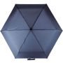 Összecsukható, automata esernyő (21 inch), hat panellel és acél vázzal. Az esernyő tépőzáras záródásán RPET címke található, műanyag karabineres fogantyúval, tokkal. Szélálló. Anyaga: RPET 190T. Emblémázás: Szitanyomás