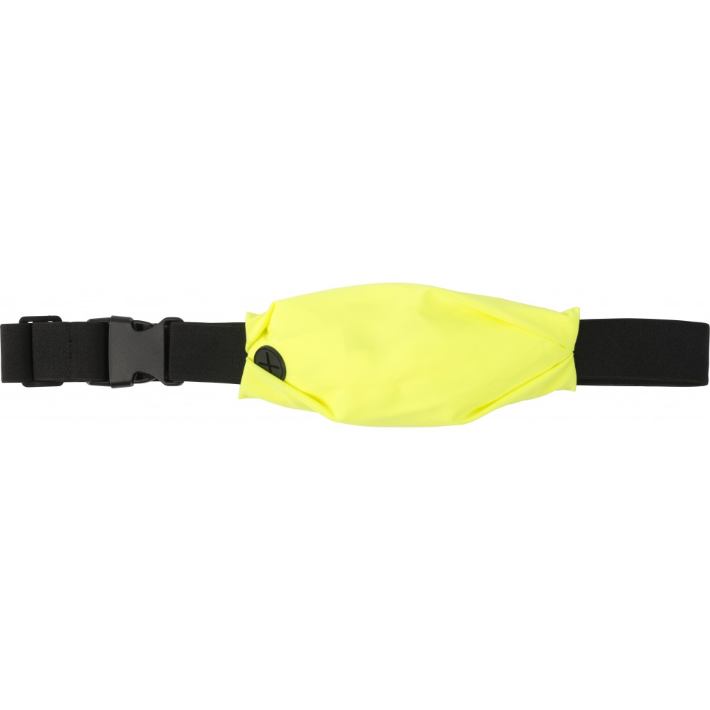 Övtáska vízlepergető anyagból, fényvisszaverő csíkkal és állítható gumipánttal. 97 cm-es derékméretig megfelelő. POM, PE, lycra. Emblémázás: Szitanyomás