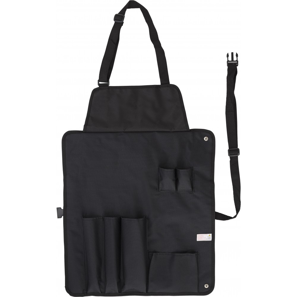 A zsebek tartalma: hússütő villa, kés, fogó, lapát, só- és borsszóró. Emblémázás: Szitanyomás, Tamponnyomás