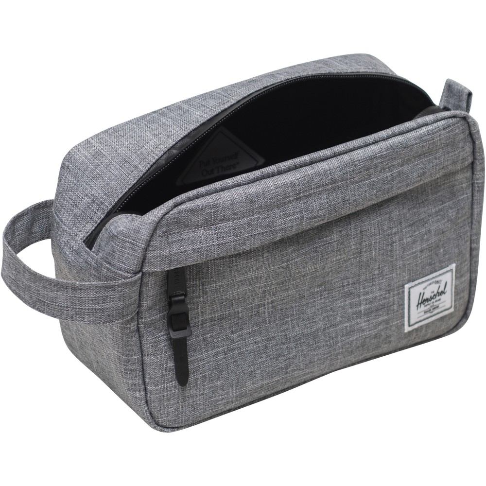 A Herschel Chapter utazókészlet tökéletes társ hosszabb utazásokhoz. Használd fogkeféd és piperecikkeid tárolására, vagy bővítsd ki a látókörét, és tartsd tökéletesen rendszerezve a poggyászodban az olyan apróságokat, mint a zoknik, töltők, útikönyvek és térképek. A 600D anyagot szakértő módon 100%-ban újrahasznosított vizespalackokból alakították ki, így egyszerre környezetbarát és tartós. A vízálló, cipzáras záródás biztosítja, hogy a legfontosabb dolgaid védve maradjanak, míg a kényelmes oldalsó fogantyú könnyű hordozást biztosít. A Herschel Chapter extra szervezési lehetőségekre lett tervezve, cipzáras elülső zsebbel és belső hálós tokkal, így páratlan tárolási lehetőségeket biztosít. Ha kaland vár rád, a Herschel Chapter készen áll, hogy csatlakozzon hozzád a következő utazásodon. Emblémázás: Szitanyomás