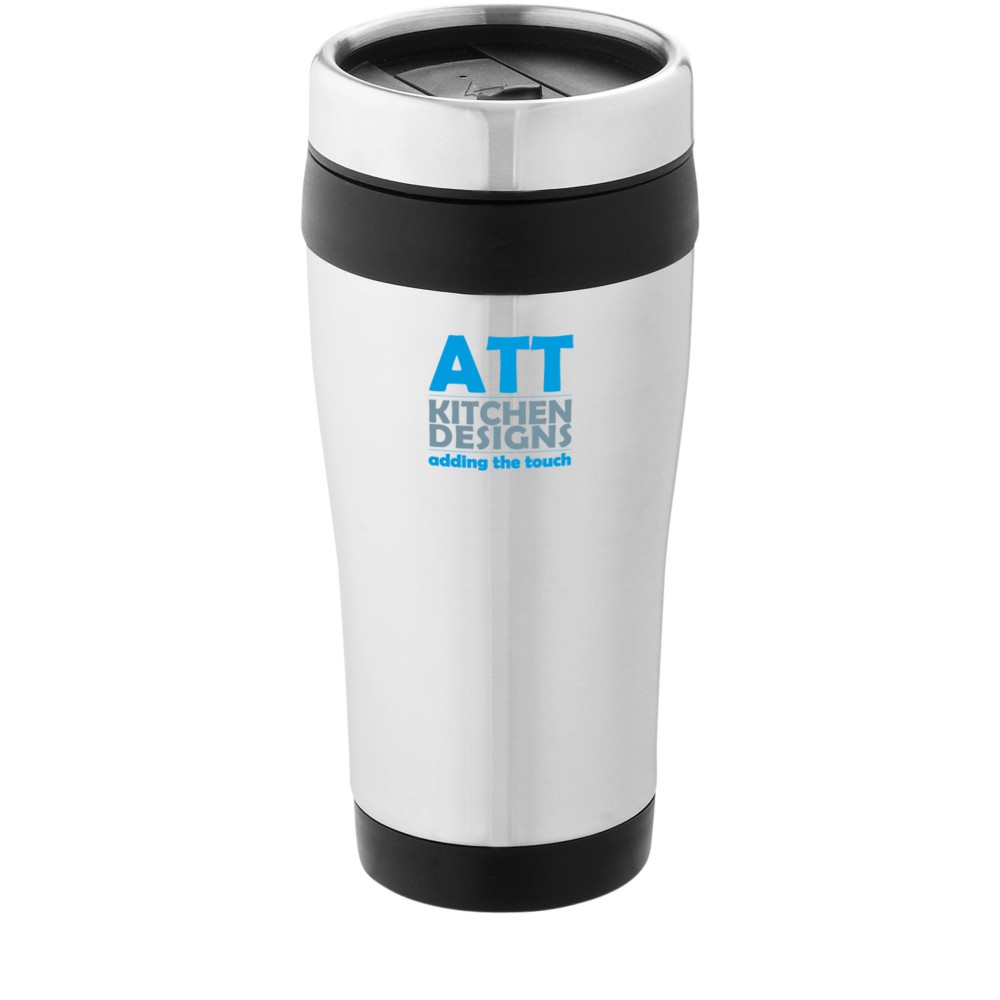 Duplafalú bögre rácsavarható tetővel és elcsúsztatható nyílással. A rozsdamentes acél és a műanyag kombinációja rendkívül erőssé, korrózióállóvá és könnyen tisztíthatóvá teszi a poharat. Nem szivárgásmentes. Szénsavas italokkal is használható. Mosogatógépben nem mosható és mikrohullámú sütőben történő melegítésre nem alkalmas. Űrtartalom: 470 ml. Emblémázás: Gravírozás, Tamponnyomás