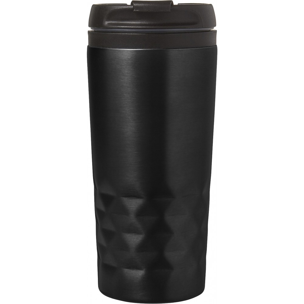 Duplafalú fedeles pohár. 300 ml. Rozsdamentes acél és BPA-mentes műanyag. Nem szivárgásmentes és nem mosogatógépálló termék. Emblémázás: Gravírozás, Körszita, Tamponnyomás