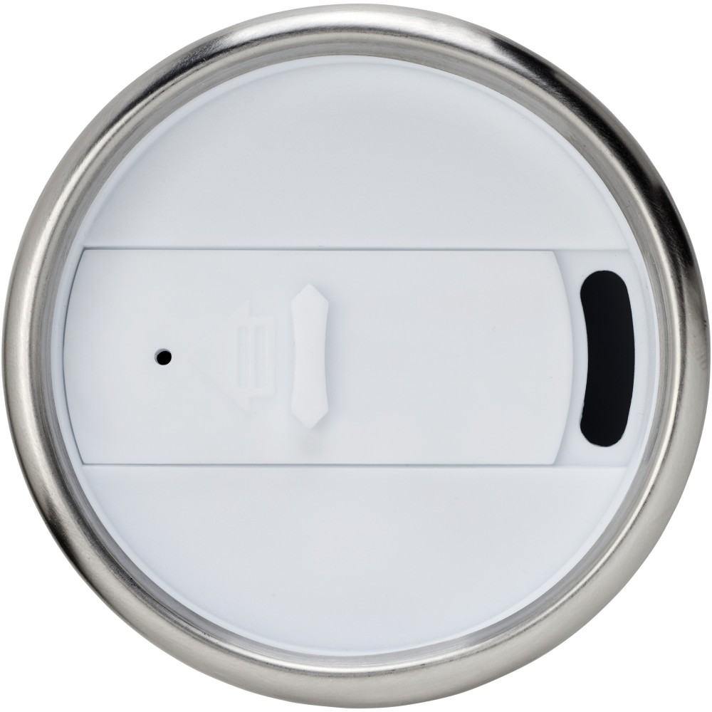 Duplafalú bögre rácsavarható tetővel és elcsúsztatható nyílással. A rozsdamentes acél és a műanyag kombinációja rendkívül erőssé, korrózióállóvá és könnyen tisztíthatóvá teszi a poharat. Nem szivárgásmentes. Szénsavas italokkal is használható. Mosogatógépben nem mosható és mikrohullámú sütőben történő melegítésre nem alkalmas. Űrtartalom: 470 ml. Emblémázás: Gravírozás, Tamponnyomás