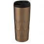Duplafalú réz vákuumszigetelt pohár csavaros szivárgásmentes fedéllel, kifinomult geometriai kialakítással. A szigetelt 18/8-as rozsdamentes acél több órán keresztül melegen vagy hidegen tartja az italokat. BPA-mentes, a német élelmiszerbiztonsági törvény (LFGB) szerint tesztelt és jóváhagyott, és a REACH előírásai szerint ftaláttartalomra tesztelve. Űrtartalma 450 ml. Kézi mosogatása javasolt. Újrahasznosított karton díszdobozban. Emblémázás: Gravírozás, Tamponnyomás