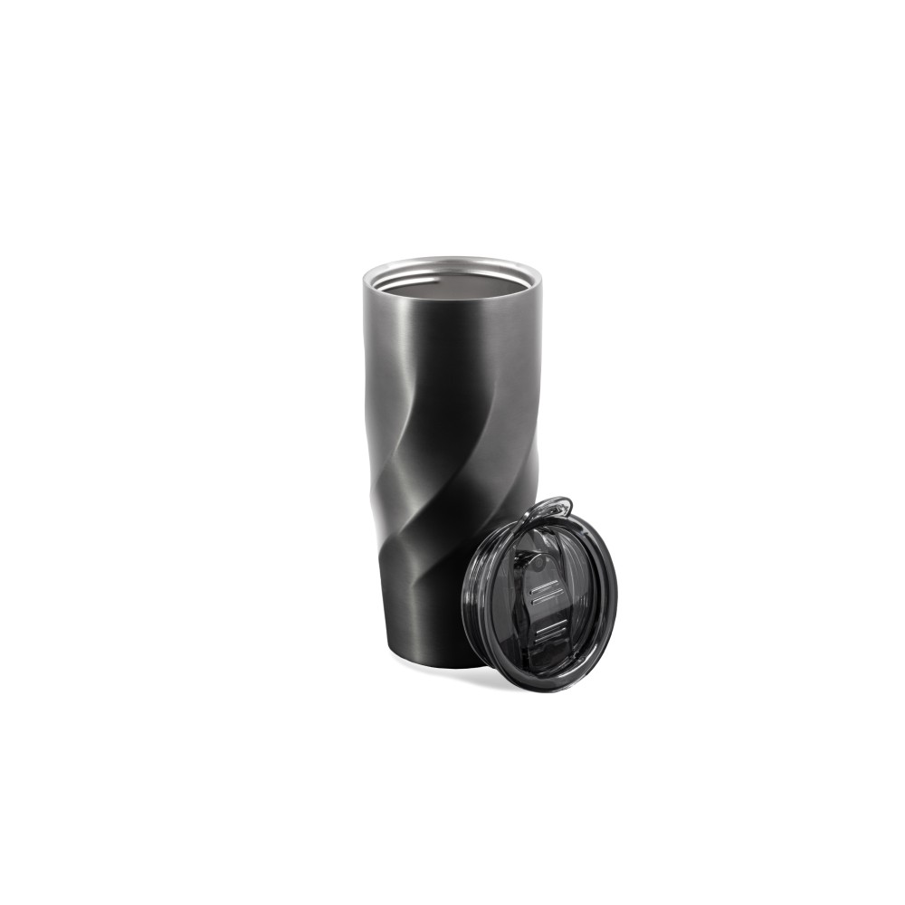 A Vortex Calix XL utazóbögre egyesíti a luxust a fenntarthatósággal, újrahasznosított 304 rozsdamentes acélból készült, környezettudatos stílusjegyként. Csavaros, szivárgásmentes fedéllel rendelkezik, amely habzó italok befogadására alkalmas, valamint egy hordozóhurokkal, amelyhez opcionális vállpánt csatlakoztatható. A Coppertech duplafalú szigeteléssel ellátott 500 ml-es pohár akár 12 órán keresztül hidegen, vagy 4 órán keresztül melegen tartja az italokat. A Vortex Calix XL tökéletes városi vagy szabadtéri kalandokhoz, mosogatógépben mosható, és a tartósságot tartós hőmérséklet-szabályozással kombinálja. Emblémázás: Gravírozás