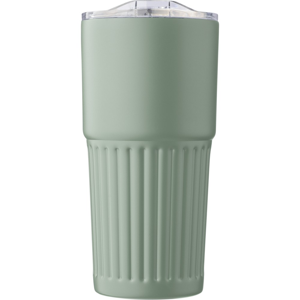 Újrahasznosított rozsdamentes acélból készült, duplafalú ivópohár (500 ml). Belső része 304-es, külső része 201-es rozsdamentes acél, bordázott fogófelülettel. AS fedéllel rendelkezik csúsztatható zárással. A palacktesten gravírozott recycled (újrahasznosított) alapanyagra utaló logó található. Darabonként barna kartondobozba csomagolva. Emblémázás: Körszita