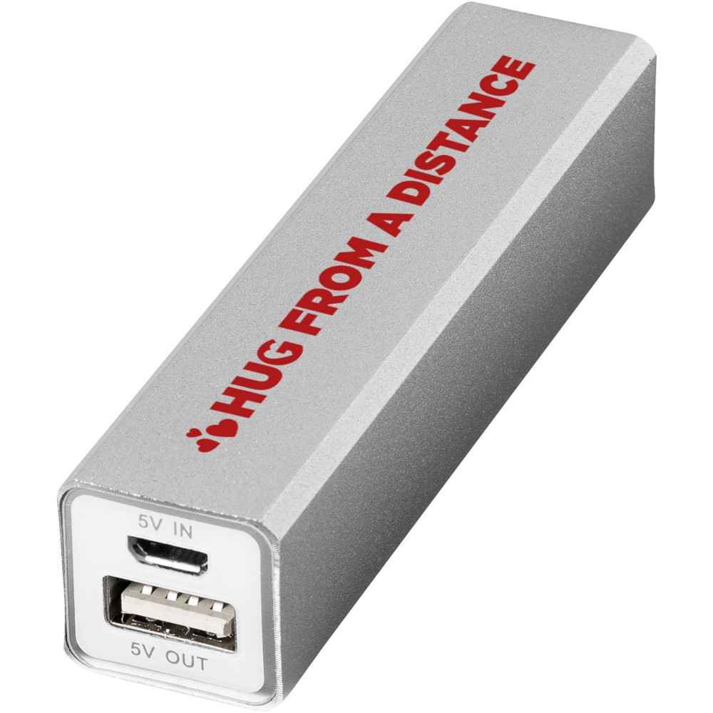 A powerbank 2200 mAh akkumulátor kapacitása elegendő egy mobil készülék vagy tablet feltöltéséhez. A powerbank USB kábelen keresztül tölt. Ha a töltés kész, zöld fényjelzés mutatja. Fehér kartondobozt tartalmaz. Veszélyes áru, csomagban nem küldhető. Emblémázás: Gravírozás, Tamponnyomás