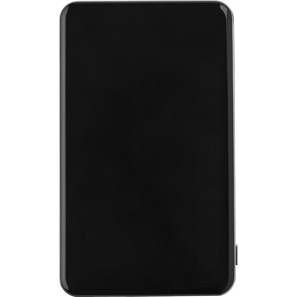 Li-polimer tartalék akkumulátor 5000mAh kapacitással. Bemenet 5V/1A, kimenet 5V/1A/2.1A. Elő- és hátlapja is fényes felületű, ezüst színű oldalpanelekkel. 5 LED fény jelzi a töltöttségi szintet. A 32 cm-es USB / mikro USB csatlakozós vezetéket tartalmazza. A legtöbb elektronikai eszközzel kompatibilis. ABS műanyag. Veszélyes áru, csomagban nem küldhető. Emblémázás: Tamponnyomás