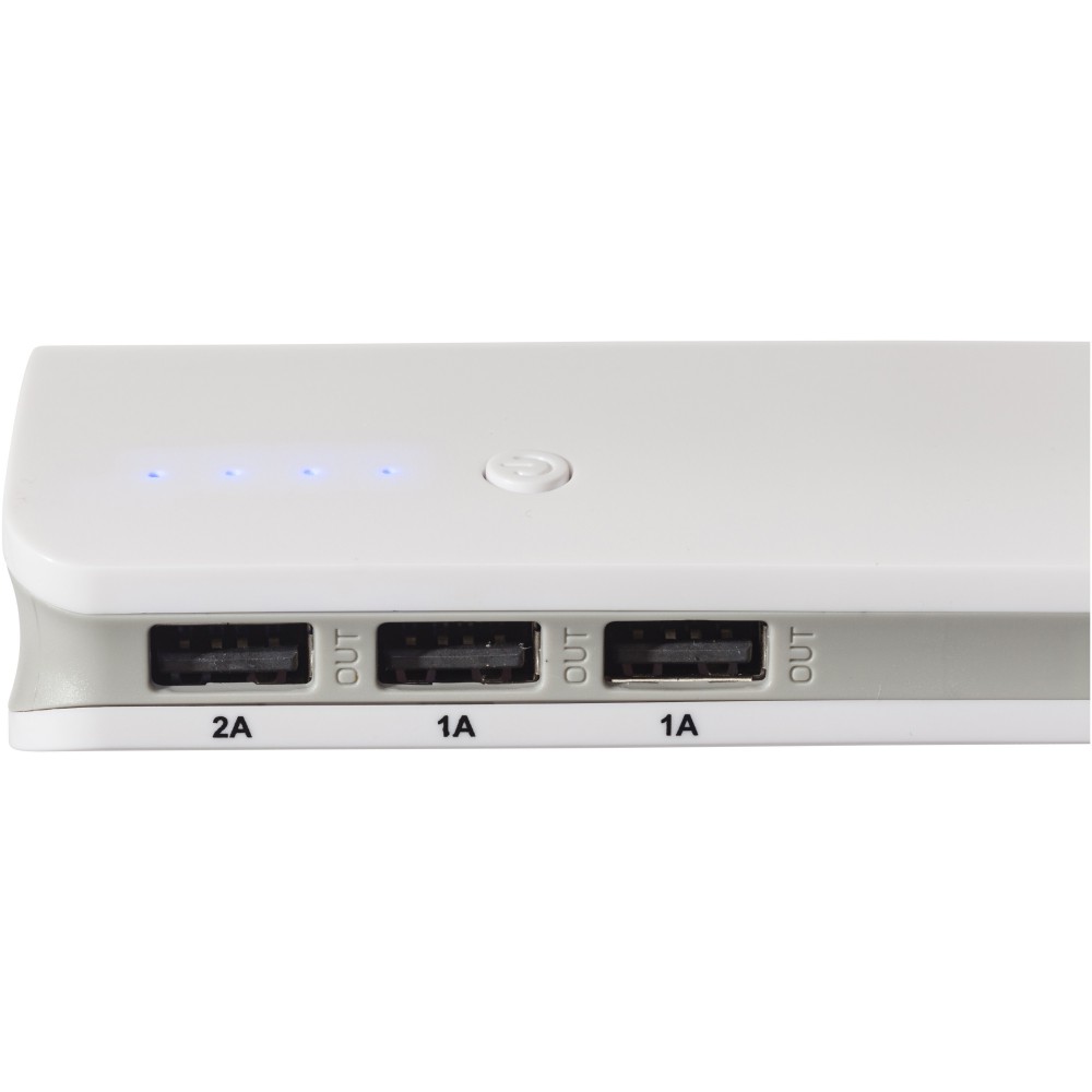 Spare powerbank 10000 mAh kapacitással, lítium ion akkumulátorral és beépített lámpával. Ez a powerbank lehetőséget nyújt akár 3 db eszköz egyidejű töltésére. Max. kimenet 5V/2.1A (kimenet 1: 5V / 1A, kimenet 2: 5V / 1A és kimenet: 5V / 2,1A). A 4 db kék LED ?es kijelző az akkumulátor töltöttségi szintjét jelzi. Tartozék Micro USB kábellel. Csomagolás: fehér Avenue ajándékdoboz. Veszélyes áru, csomagban nem küldhető. Emblémázás: Tamponnyomás, UV nyomtatás