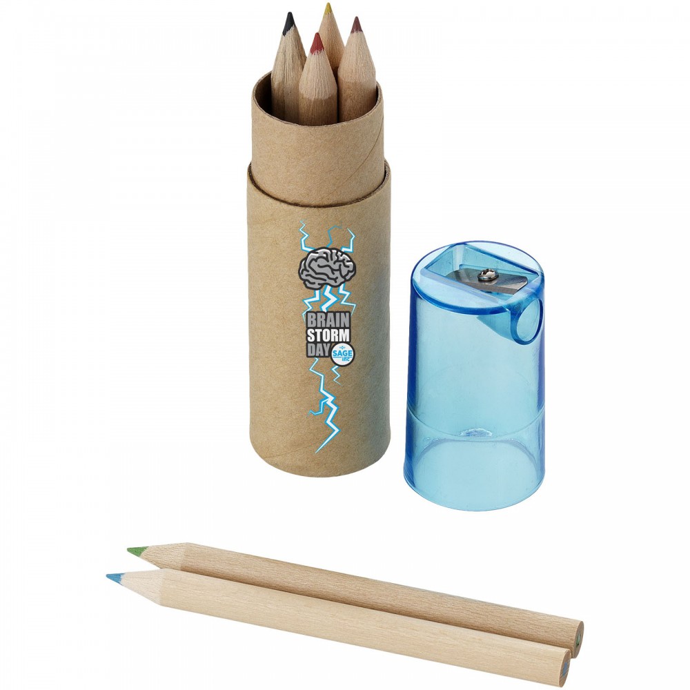6 színes ceruza kartonhenger dobozban, a műanyag kupakban hegyezővel. Emblémázás: Tamponnyomás