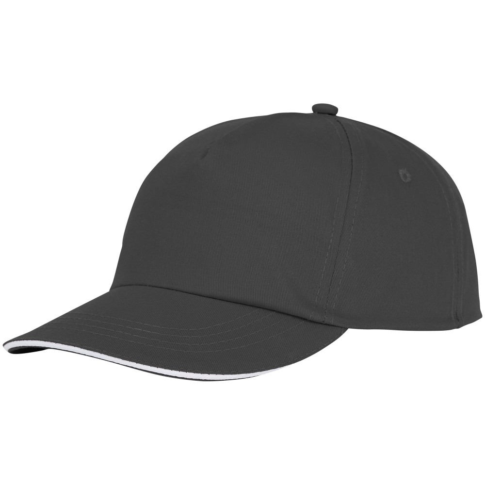 5 paneles baseballsapka szendvics simléderrel, tépőzárral. 100% twill pamut.175 g/m2. Emblémázás: Hímzés, Szitanyomás