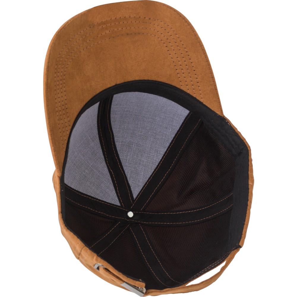 Hatpaneles velúr sapka, hátul fémcsatos záródással. Szellőzőlyukak a panel elülső, felső oldalán. Emblémázás: Hímzés, Szitanyomás