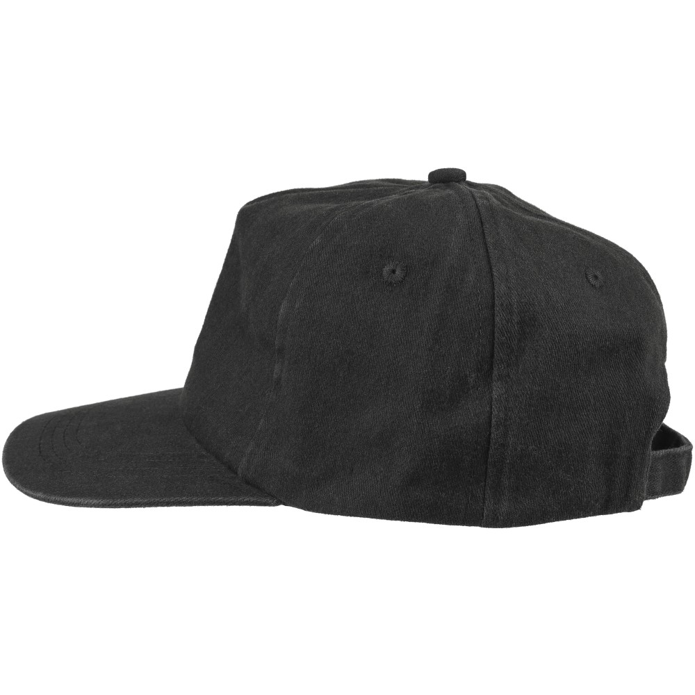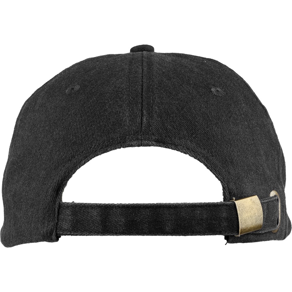 5 paneles baseballsapka 240 g/m2 vászon anyagból, koptatott hatású kivitelben, 7 cm-es ellenzővel, fémcsattal állítható pánttal. Bélés nélkül. Emblémázás: Hímzés, Szitanyomás
