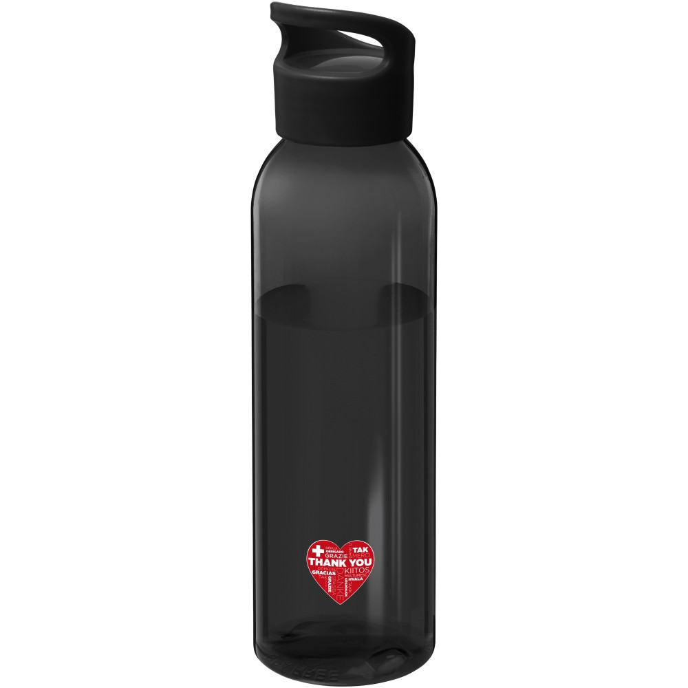 Az átlátszó Sky vizes palack Eastman Tritan anyagból készült, így ez a palack BPA-mentes, könnyű, tartós és ütésálló. Az egyfalú flakon 650 ml folyadékot tud tárolni, és a legtöbb hátizsák oldalzsebébe, valamint a legtöbb autós pohártartóba elfér. A felcsavarható fedél biztosítja a könnyű nyitást és zárást, valamint beépített hordozó fogantyúval rendelkezik. Szivárgásmentes. Szénsavas italokkal nem használható. Mosogatógépben nem mosható és mikrohullámú sütőben történő melegítésre nem alkalmas. Emblémázás: Körszita, Tamponnyomás, UV nyomtatás