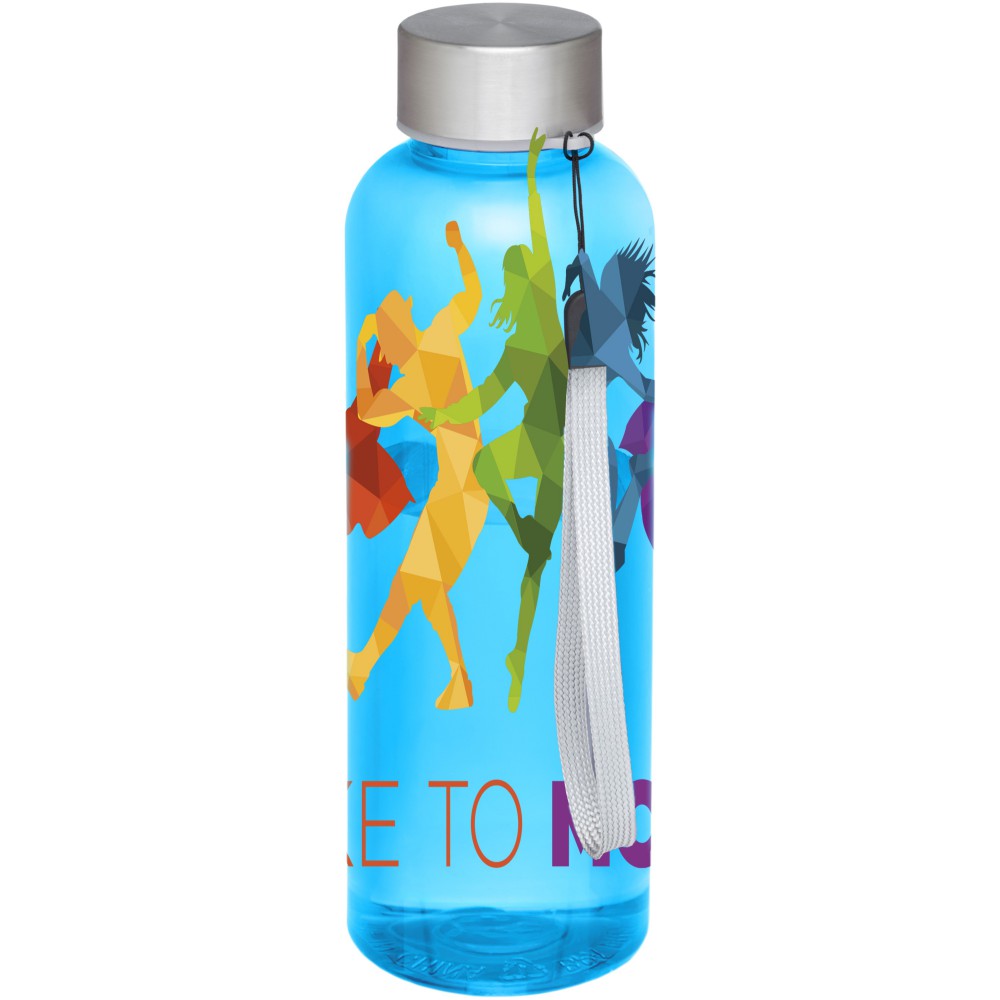 Egyfalú sportpalack erős Tritan anyagból csavaros kupakkal, csuklópánttal. BPA mentes. Szivárgásmentes. Szénsavas italokkal nem használható. Mosogatógépben nem mosható és mikrohullámú sütőben történő melegítésre nem alkalmas. Űrtartalom: 500 ml. Eastman Tritan, rozsdamentes acél. Emblémázás: Gravírozás, Tamponnyomás, UV nyomtatás