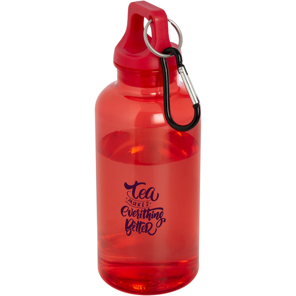 Az újrahasznosított műanyagból készült, tartós, mégis könnyű, 400 ml-es palackkal mindig hidratált maradhatsz. Tökéletes társ edzés közben, egynapos kirándulásokon vagy az irodában. Az egyfalú Oregon palack lecsavarható fedéllel rendelkezik. A mellékelt karabinerrel (hegymászásra nem alkalmas) biztonságosan rögzítheted táskádhoz. BPA-mentes, a német élelmiszer-biztonsági jogszabályok (LFGB), valamint a REACH alapján ftalát-tartalomra tesztelt és jóváhagyott. A kupak és a palack 100%-ban újrahasznosított műanyagból készült. Emblémázás: Tamponnyomás