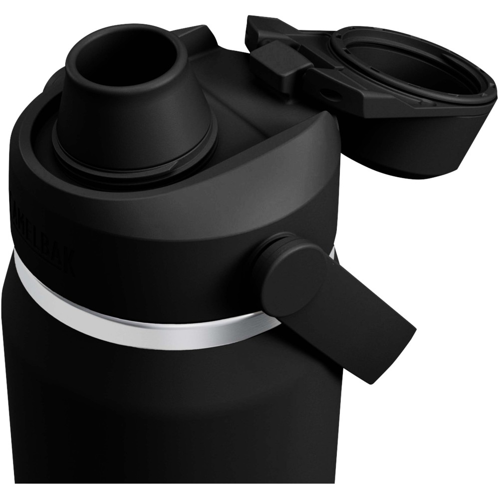 A Camelbak® Thrive Chug VSS (vákuumszigetelt rozsdamentes acél) kulacs kényelmes, útközbeni hidratálást biztosít. Beépített ütközővel rendelkezik, amely védi a horpadásoktól, és biztos fogást nyújt szinte bármilyen felületen. Tartós, teljes porfestett bevonata megőrzi az italok ízét, míg duplafalú vákuumszigetelése órákon át melegen vagy hidegen tartja az italokat. Új kiöntője felnyitható, és automatikusan nyitott helyzetben marad, visszanyomva pedig stabilan záródik. A könnyen záródó kiöntő 100%-ban szivárgásmentes használatot biztosít, míg az új, puha, elfordítható fogantyú megkönnyíti a kulacs hordozását. Űrtartalom: 750 ml. Emblémázás: Gravírozás, Tamponnyomás