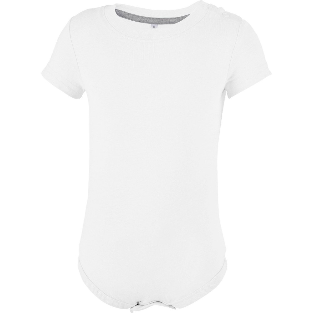 100% pamut, enzimmosott anyag extra puha tapintással. Vállán és a lábak között patentos záródás, bordás szegések a nyak- és lábvonalban. 180 g/m2. 3 hónapos kortól 24 hónapos méretig. Emblémázás: Hímzés, Szitanyomás