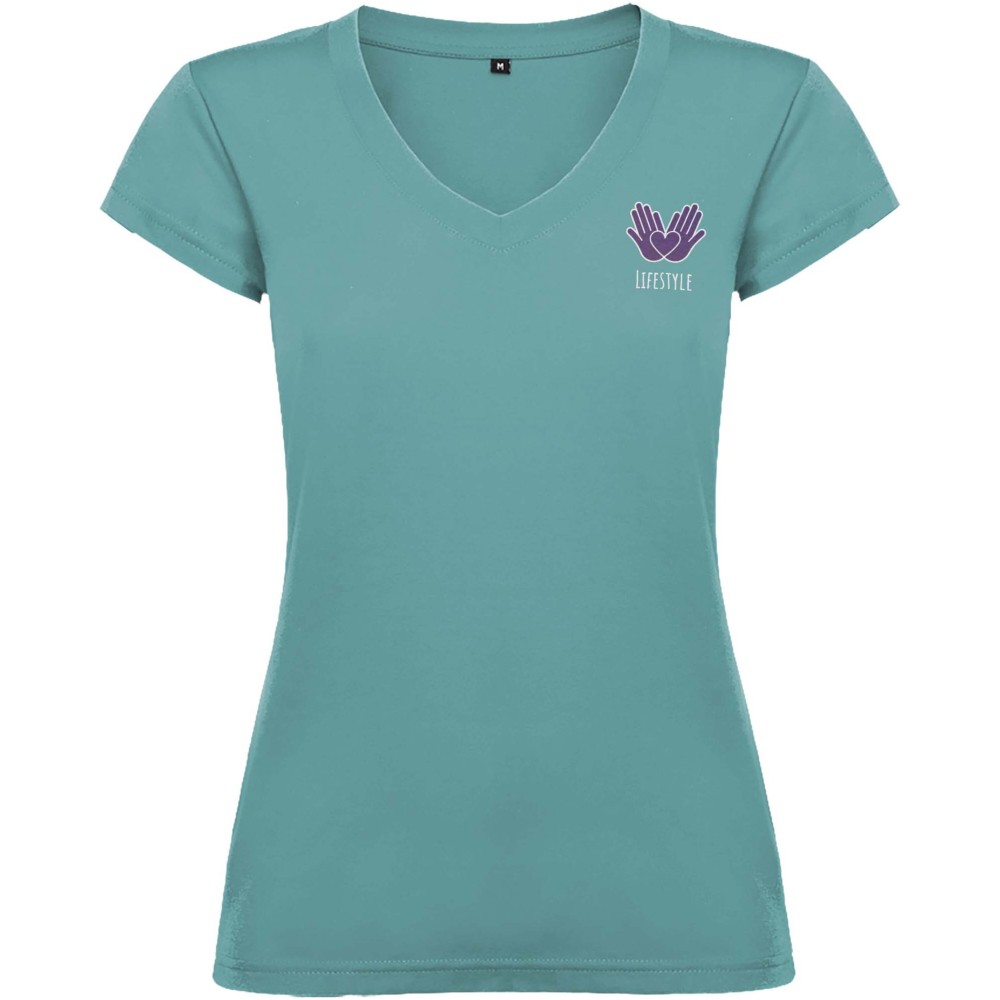 Roly Victoria női V-nyakú pamutpóló, Turquois