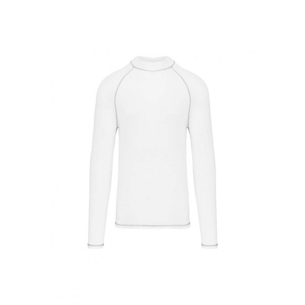 Anyaga: 88% újrahasznosított poliészter és 12% elasztán. UV50+ védelemmel a EN13758-1 és 2 szabványnak megfelelően. Hosszú raglán ujjak kontrasztos öltésekkel. Duplatűzött szegések. Kitéphető címke az újramárkázás miatt. 160g/m2. Emblémázás: Szitanyomás