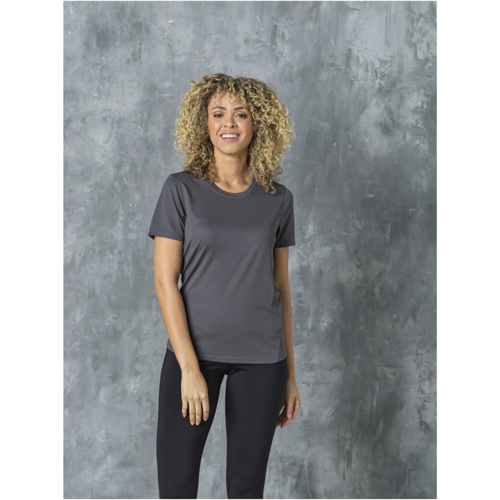 Rövidujjú női cool fit póló. Egyedi belső emblémzási lehetőségek. Letéphető, kivágható címke a címke nélküli kényelemért. Saját anyagából készült nyakpasszé. 100% poliészter, 105 g/m2. Emblémázás: Szitanyomás