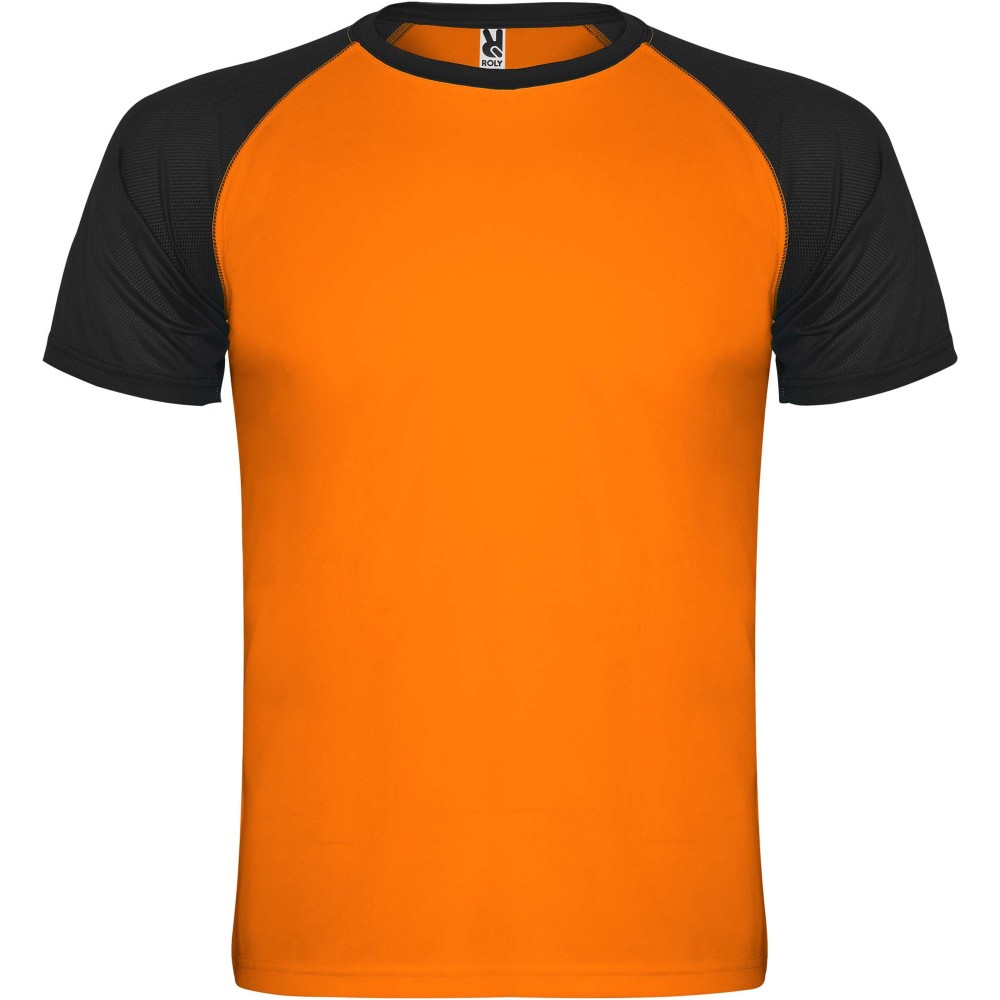 Roly Indianapolis rövid ujjú uniszex sportpóló, fluor orange, solid black