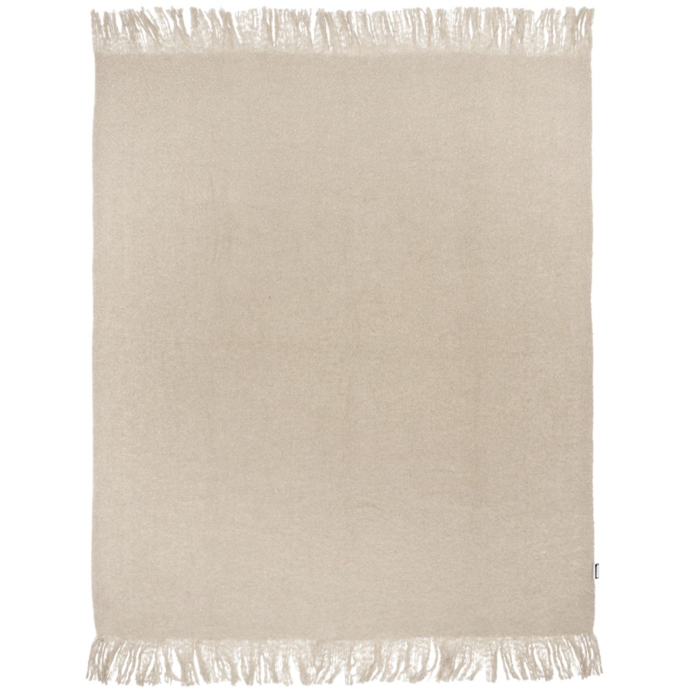 Ultrapuha újrahasznosított PET-ből készült moher takaró összefogó pánttal. A rojtok hossza: 10 cm mindkét végén. Összefogó szalag mérete: 72 x 4 cm. 215 g/m2. Emblémázás: Hímzés