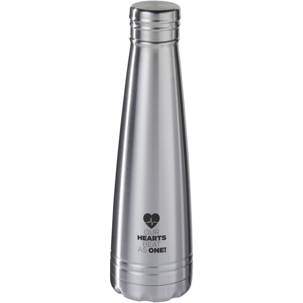 Duke vákumos palack. Belső fala réz, ennek köszönhetően 48 órás hideg- és 12 órás melegtartási képességgel rendelkezik. Szivárgásmentes. Szénsavas italokkal nem használható. Mosogatógépben nem mosható és mikrohullámú sütőben történő melegítésre nem alkalmas. Űrtartalom: 500 ml. Csomagolása Avenue díszdoboz. Emblémázás: Gravírozás, Körszita, Tamponnyomás