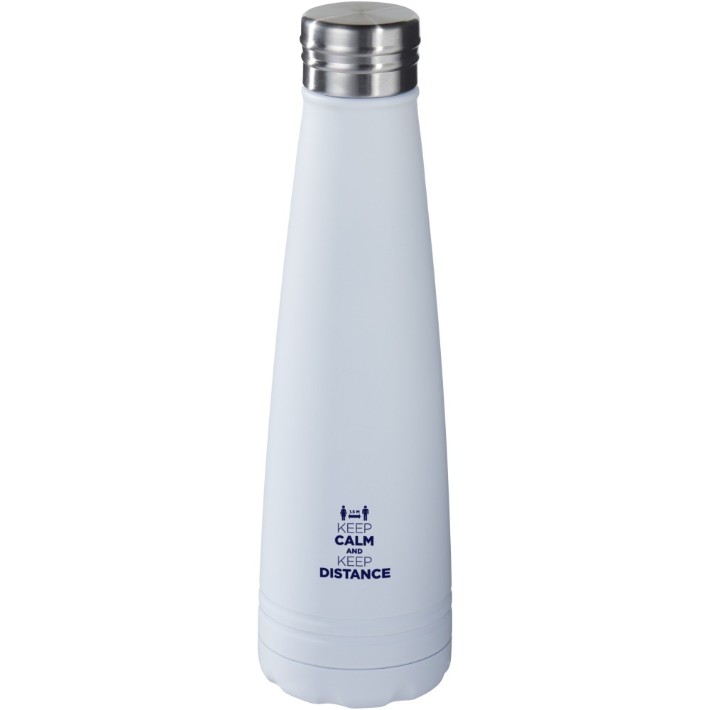 Duke vákumos palack. Belső fala réz, ennek köszönhetően 48 órás hideg- és 12 órás melegtartási képességgel rendelkezik. Szivárgásmentes. Szénsavas italokkal nem használható. Mosogatógépben nem mosható és mikrohullámú sütőben történő melegítésre nem alkalmas. Űrtartalom: 500 ml. Csomagolása Avenue díszdoboz. Emblémázás: Gravírozás, Körszita, Tamponnyomás