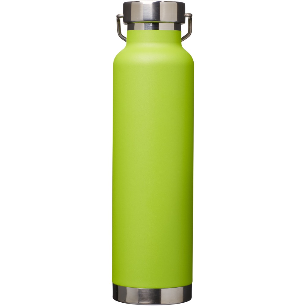 Thor duplafalú vákumos palack. Belső fala réz, ennek köszönhetően 48 órás hideg- és 12 órás melegtartási képességgel rendelkezik. Ez a kialakítás megakadályozza a kondenzációt a palack külső falán. A termoszhoz csavaros, rozsdamentes acél kupak tartozik. Széles kiöntő nyílással rendelkezik, amely akár jégkockák behelyezésére is alkalmas. Szivárgásmentes. Szénsavas italokkal nem használható. Mosogatógépben nem mosható és mikrohullámú sütőben történő melegítésre nem alkalmas. Űrtartalom: 650 ml. Csomagolása Avenue díszdoboz. Rozsdamentes acél. Emblémázás: Gravírozás, Tamponnyomás