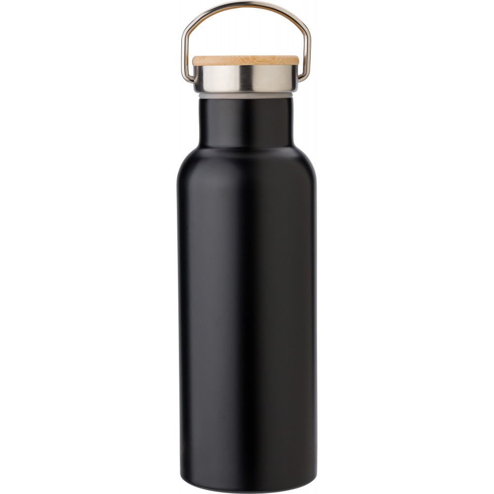 Rozsdamentes acél, duplafalú palack bambuszbetétes, csavaros kupakkal. Űrtartalom: 500 ml. Emblémázás: Gravírozás, Tamponnyomás