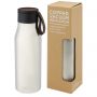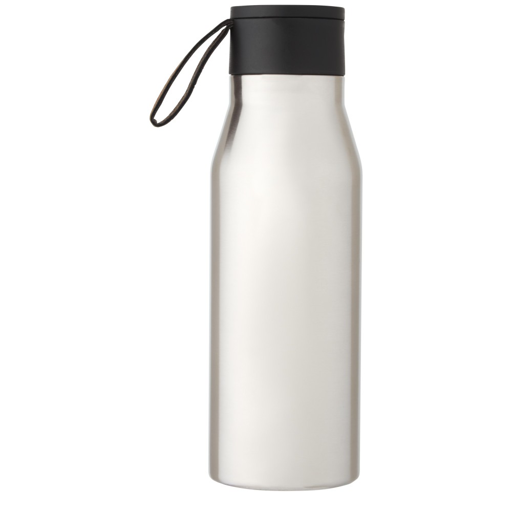 Réz vákuumszigetelt rozsdamentes acél palack klasszikus és elegáns dizájnnal. PU bőr szíjjal és részlettel a fedélen. Ez ideálissá teszi a lézergravírozáshoz, amely a logót ezüst színben emeli ki, gyönyörű vizuális hatást hozva létre. A 18/8-as rozsdamentes acél duplafalú réz vákuumszigetelésével az italok több órán keresztül melegek vagy hidegek maradnak. A német élelmiszerbiztonsági jogszabályok (LFGB) szerint tesztelték és jóváhagyták, és a REACH előírásai szerint tesztelték a ftaláttartalmat. Szivárgásmentes. Szénsavas italokkal nem használható. Mosogatógépben nem mosható és mikrohullámú sütőben történő melegítésre nem alkalmas. Űrtartalom: 500 ml. Újrahasznosított karton díszdobozban. Emblémázás: Gravírozás, Tamponnyomás