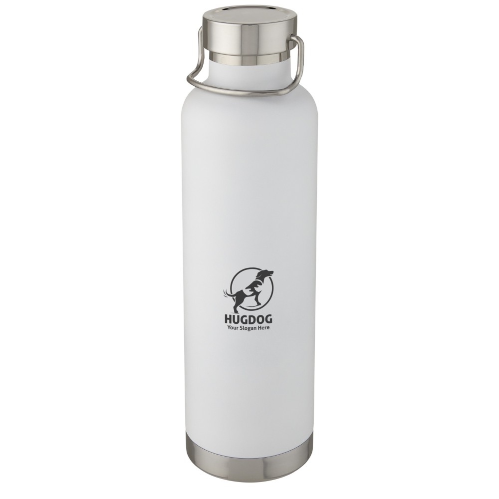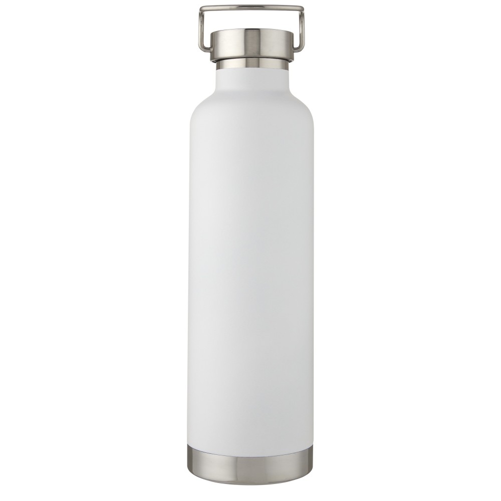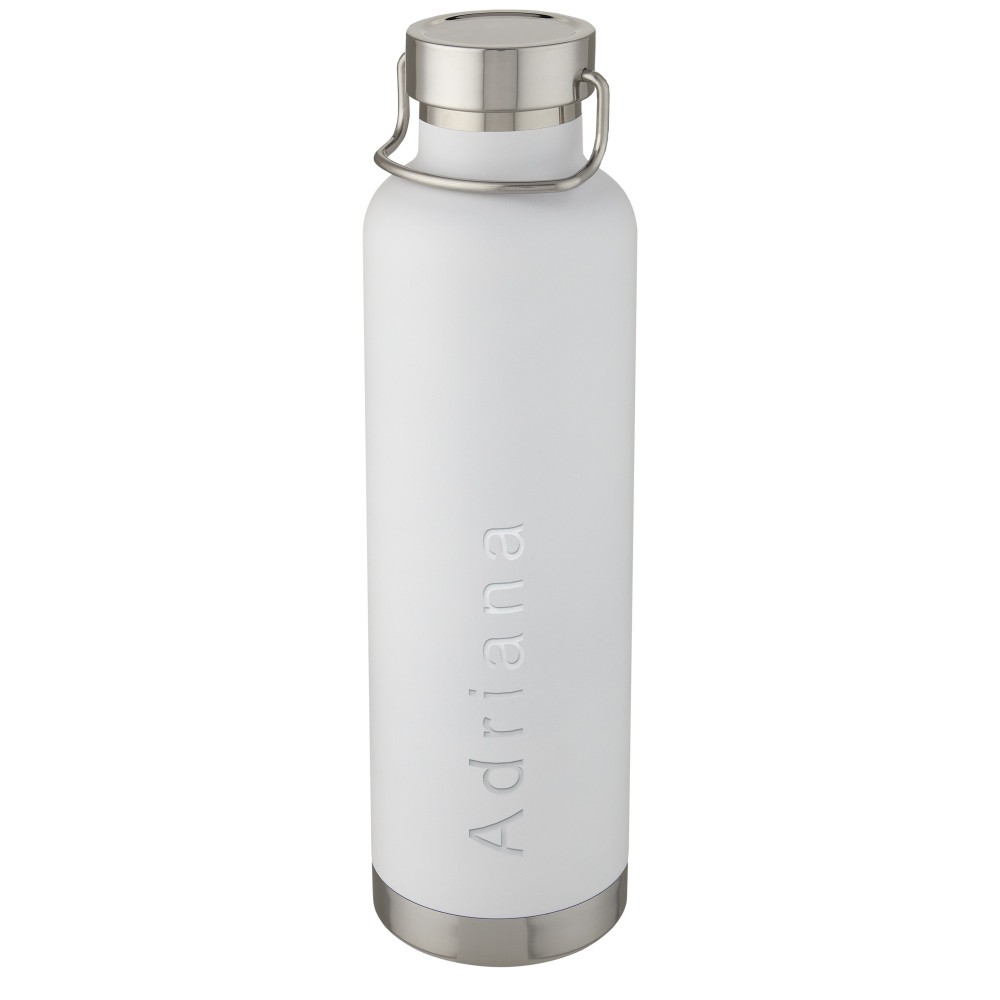Nagy, duplafalú sportpalack 18/8-as rozsdamentes acél vákuumkonstrukcióval és rézszigeteléssel, amely több órán keresztül melegen vagy hidegen tartja az italokat. A konstrukció megakadályozza a páralecsapódást a palack külső oldalán, és a trendi porfújt bevonat extra tartóssá teszi. Rozsdamentes acél, csavaros fedél tartós, rozsdamentes acél fogóval. Széles nyílás a könnyű feltöltéshez, öntéshez és tisztításhoz. BPA-mentes, a német élelmiszerbiztonsági törvény (LFGB) szerint tesztelt és jóváhagyott. Ftaláttartalomra tesztelve és jóváhagyva a REACH előírásai szerint. Jégkockákhoz tökéletes. Szivárgásmentes. Szénsavas italokkal nem használható. Mosogatógépben nem mosható és mikrohullámú sütőben történő melegítésre nem alkalmas. Űrtartalom: 1 l. Újrahasznosított karton díszdobozban. Emblémázás: Gravírozás