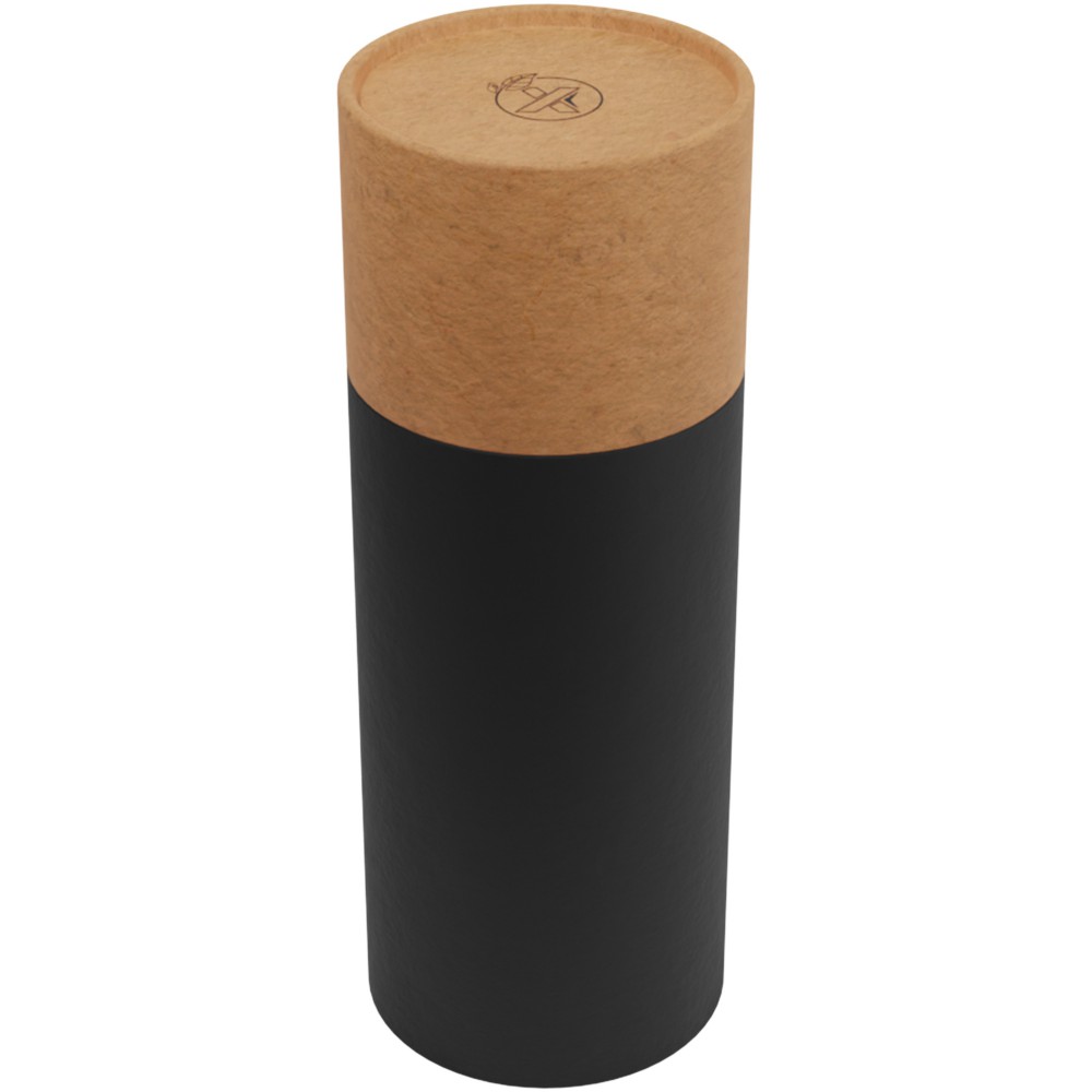 Duplafalú, vákuumszigetelt rozsdamentes acél és bambusz palack, a fedél tetején hőmérséklet-érzékelővel, amely a palack belsejében lévő ital hőmérsékletét mutatja (Celsius fok). Az italokat 8 órán keresztül melegen, vagy 12 órán keresztül hidegen tartja. Teafilterrel együtt. Űrtartalom: 500 ml. Díszdobozban szállítjuk. Emblémázás: Gravírozás