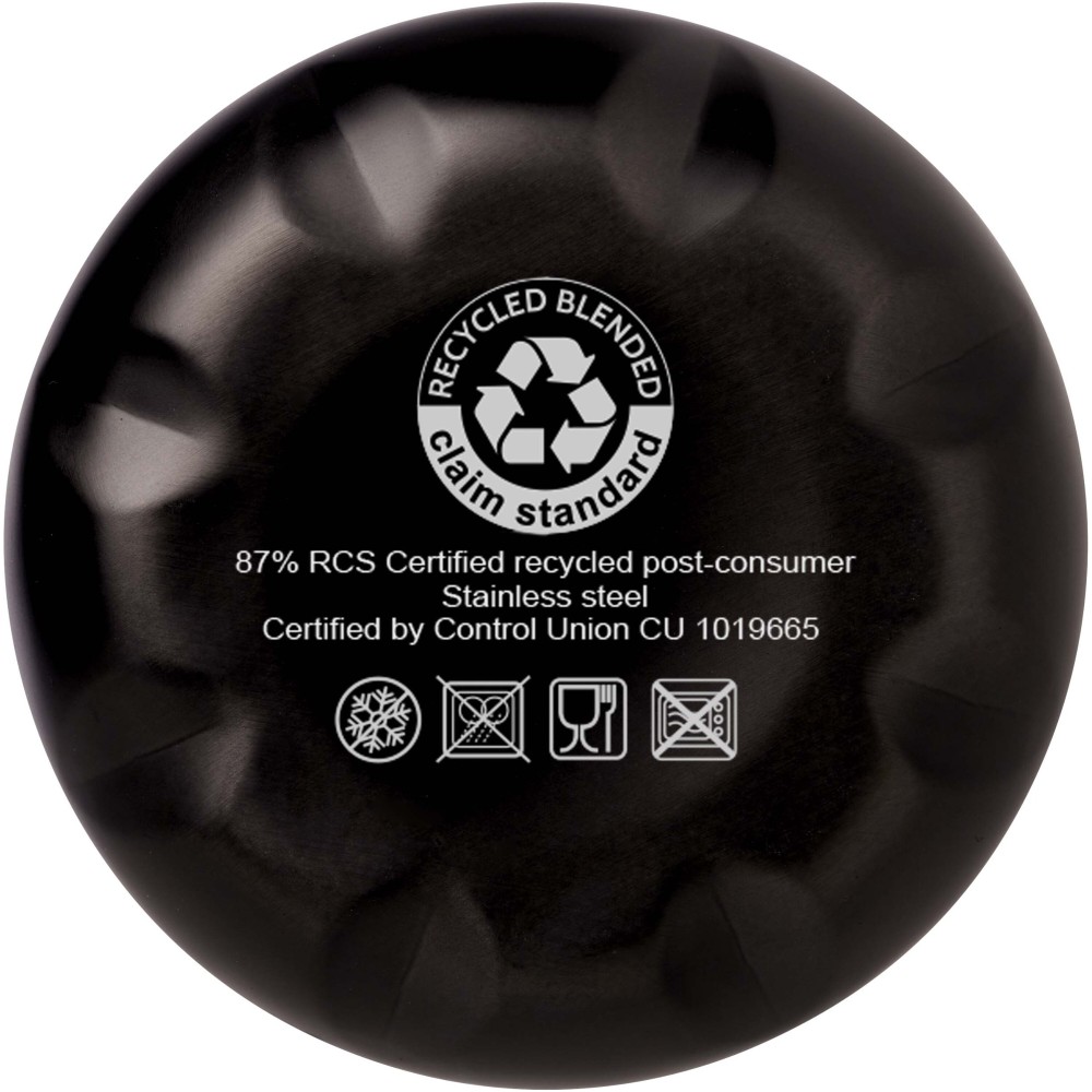 Vákuumszigetelt, RCS tanúsítvánnyal rendelkező, újrahasznosított rozsdamentes acél palack ikonikus dizájnnal, amely több órán keresztül tartja melegen vagy hidegen az italokat. A legtöbb pohártartóba illeszkedő talppal ellátott, elegáns megjelenésű vizespalack tökéletes promóciós termék. A német élelmiszer-biztonsági jogszabályok (LFGB) szerint, valamint a REACH-szabályozásnak megfelelően ftalát-tartalomra tesztelt és jóváhagyott. Űrtartalma: 500 ml. Újrahasznosított kartonból készült díszdobozban szállítjuk. Emblémázás: Bögredekor, Gravírozás
