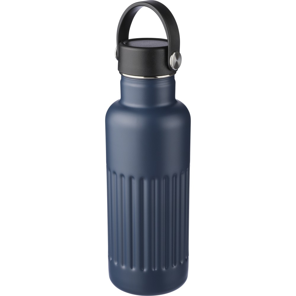 Újrahasznosított rozsdamentes acél termosz, 500 ml. A belső 304-es, a külső 201-es rozsdamentes acélból készült, bordás markolattal, PP és fém fedéllel, műanyag hordozófüllel. Gravírozott újrahasznosított logó található a terméken. Csomagolása barna papírdoboz. Emblémázás: Bögredekor, Gravírozás