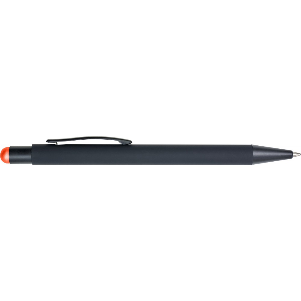 Golyóstoll színes érintővel, kék tollbetéttel és színes belső felülettel. ABS műanyag és alumínium. Emblémázás: UV nyomtatás
