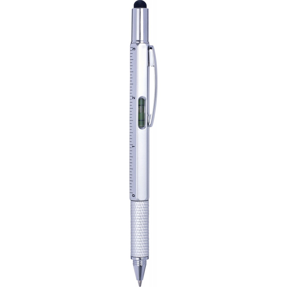 Többfunkciós golyóstoll vízmértékkel, ezüst