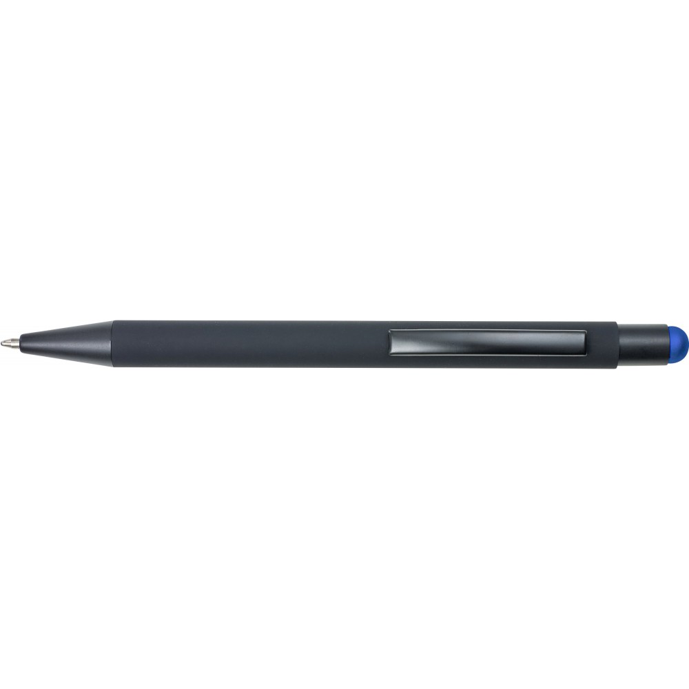 Golyóstoll színes érintővel, kék tollbetéttel és színes belső felülettel. ABS műanyag és alumínium. Emblémázás: UV nyomtatás