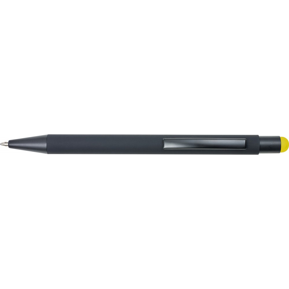 Golyóstoll színes érintővel, kék tollbetéttel és színes belső felülettel. ABS műanyag és alumínium. Emblémázás: UV nyomtatás