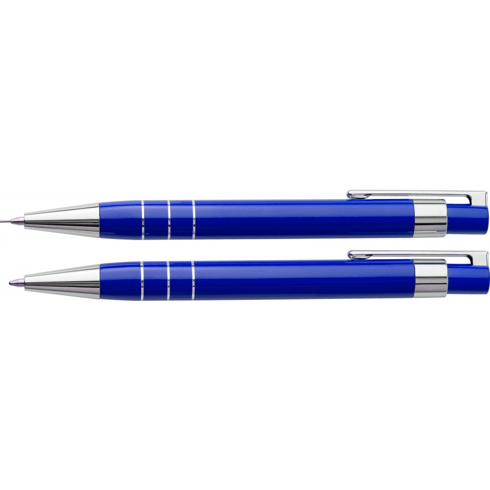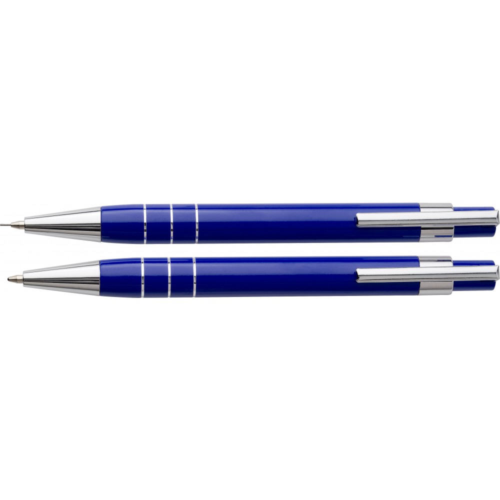 Lakkozott tollkészlet, fekete tollbetéttel, tolltartóval, kék