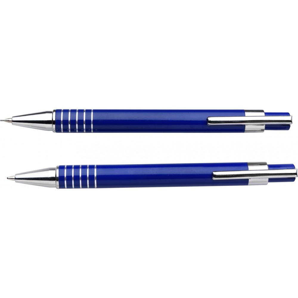 Lakkozott felületű golyóstoll fekete tollbetéttel és töltőceruza, színben hozzáillő dobozban. Emblémázás: Gravírozás, Tamponnyomás