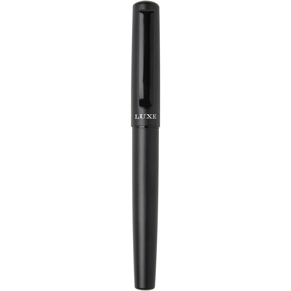 Töltőtoll újrahasznosított alumínium testtel, matt fekete bevonattal és fekete, újrahasznosított alumínium markolattal. Az alumínium újrahasznosítható anyag, és ha ezt a tollat választja, támogathatja a fenntarthatóbb gyakorlatokat, és új életet adhat az eldobott alumíniumnak. Ez a stílusos töltőtoll praktikus és fenntarthatóbb lehetőség a környezetbarát íróeszközöket kereső cégek és szervezetek számára. Fekete patronnal és fekete díszdobozban szállítjuk. Doboz mérete: 16,8 x 4,2 x 2,5 cm. Emblémázás: Gravírozás