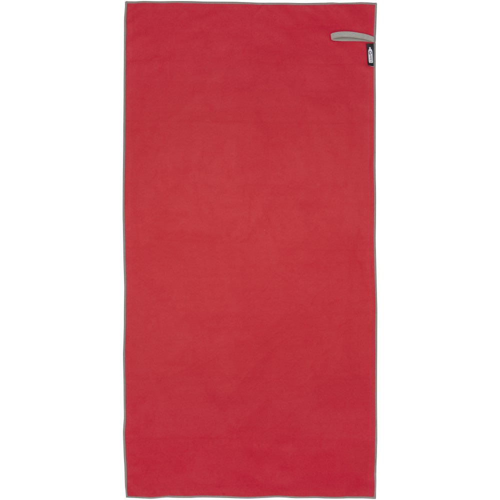 A Pieter sporttörülköző nagyon jó nedvszívó, könnyű, gyorsan szárad, az anyaga pedig tartós és rendkívül puha. Ha a törölközőt összehajtjuk és gumiszalaggal rögzítjük, kis méretűre csomagolható, így alkalmas arra, hogy magunkkal vigyük az edzőterembe, uszodába, vagy ha hátizsákos túrára, esetleg kempingezésre megyünk. A törülköző 50 x 100 cm méretű, 90% GRS újrahasznosított poliészterből és 10% nejlonból készült, és 40 °C-on mosható mosógépben. Újrahasznosított PET műanyagból készült tároló tasakkal (17 x 13 cm) szállítjuk. Emblémázás: Hímzés, Szitanyomás