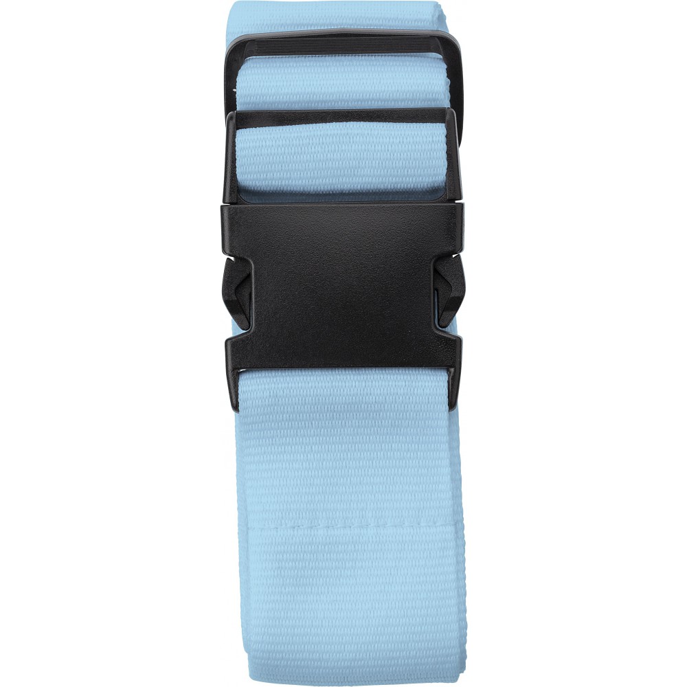 Bőröndösszefogó pánt műanyag csattal. Emblémázás: Szitanyomás, Tamponnyomás