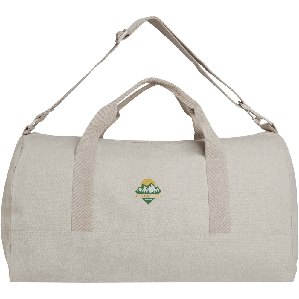 A Porter sporttáska 500 g/m2 újrahasznosított pamutból és poliészterből készült, tágas fő rekesszel a nagyobb tárgyak optimális tárolására, valamint egy kisebb elülső zsebbel, amely ideális például útlevél vagy mobiltelefon elhelyezésére. A táska kézben vihető a két rövid fogantyú segítségével, vagy a levehető és állítható vállpánttal, amely maximális kényelmet biztosít viselés közben. A sporttáska Cyclo újrahasznosított szálakat tartalmaz, amelyek előválogatott hulladékból készülnek - ennek megfelelően alakul a fonal természetes színe is. Ezek a szálak nemcsak a primer nyersanyagok iránti igényt csökkentik, hanem hozzájárulnak a körforgásos gazdaság megvalósításához, elősegítve a hulladék csökkentését és a zárt rendszerű gyártást. Minden táska Aware nyomkövetővel van ellátva, amely QR-kód segítségével lehetővé teszi a termék eredetének és útjának nyomon követését. Ez az innovatív megoldás növeli az ellátási lánc átláthatóságát, és erősebb kapcsolatot teremt a vásárló és a gyártási fol Emblémázás: Hímzés, Szitanyomás