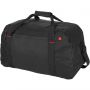 Nagy utazótáska piros díszítéssel és cipzáros első zsebbel, állítható vállpánttal. Emblémázás: Hímzés, Szitanyomás
