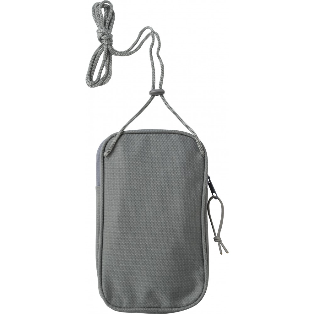 Nyakbaakasztható kistáska egy cipzáros résszel és egy nyitott zsebbel, állítható pánttal. 600D RPET anyag. Emblémázás: Szitanyomás