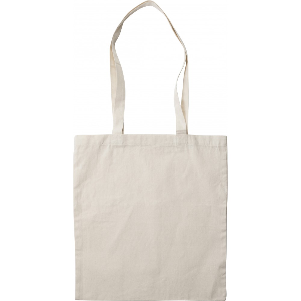 Bevásárlótáska hosszú füllel. 180 g/m2 pamut. Emblémázás: Szitanyomás
